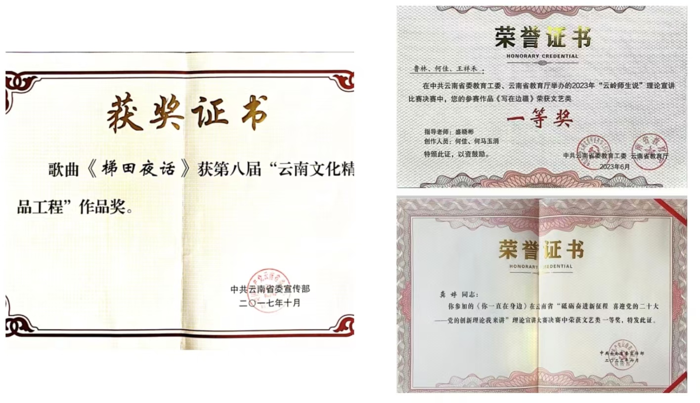 学院通过集中力量做强特色学科,努力走以特色创一流之路,在充分利用好学院“兴滇英才”文化名家、云南省政协特别联系艺术家、国家艺术基金评审专家、省市级社科项目评审专家等基础上,柔性引进国内优秀师资团队,加强师资队伍建设,通过大师+本校教师、师徒制等多重形式分层教学,持续提升人才培养质量。学院音乐创作团队所创作的歌曲入选2023年“听见中国听见你”中国当代歌曲创作精品工程、第八届“云南文化精品工程奖”;青年教师获云南省青年演员比赛第一名、本土歌曲大赛一等奖。