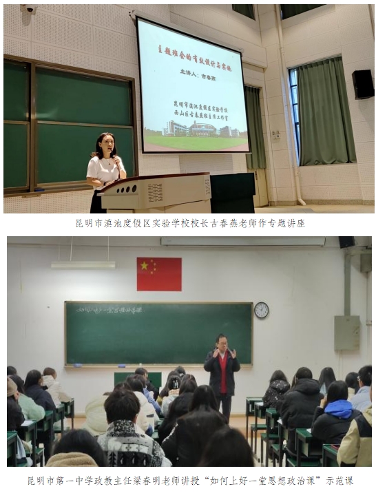 坚持深化校地、校校合作,推动大中小学思想政治教育一体化建设。2023年以来,先后与中共昆明市委宣传部、中共昆明市委党史研究室、昆明市教育体育局共同举办“昆明市大中小学思政课一体化建设研讨会”“学习贯彻习近平总书记在学校思想政治理论课教师座谈会上的重要讲话精神”五周年座谈会,弘扬“聂耳精神赓续红色血脉 大思政课”建设研讨会暨“聂耳精神”融入思想政治理论课教学集体备课会。2023年11月,马克思主义学院对昆明市中小学200名思政课骨干教师进行培训,积极服务地方教育改革发展建设。