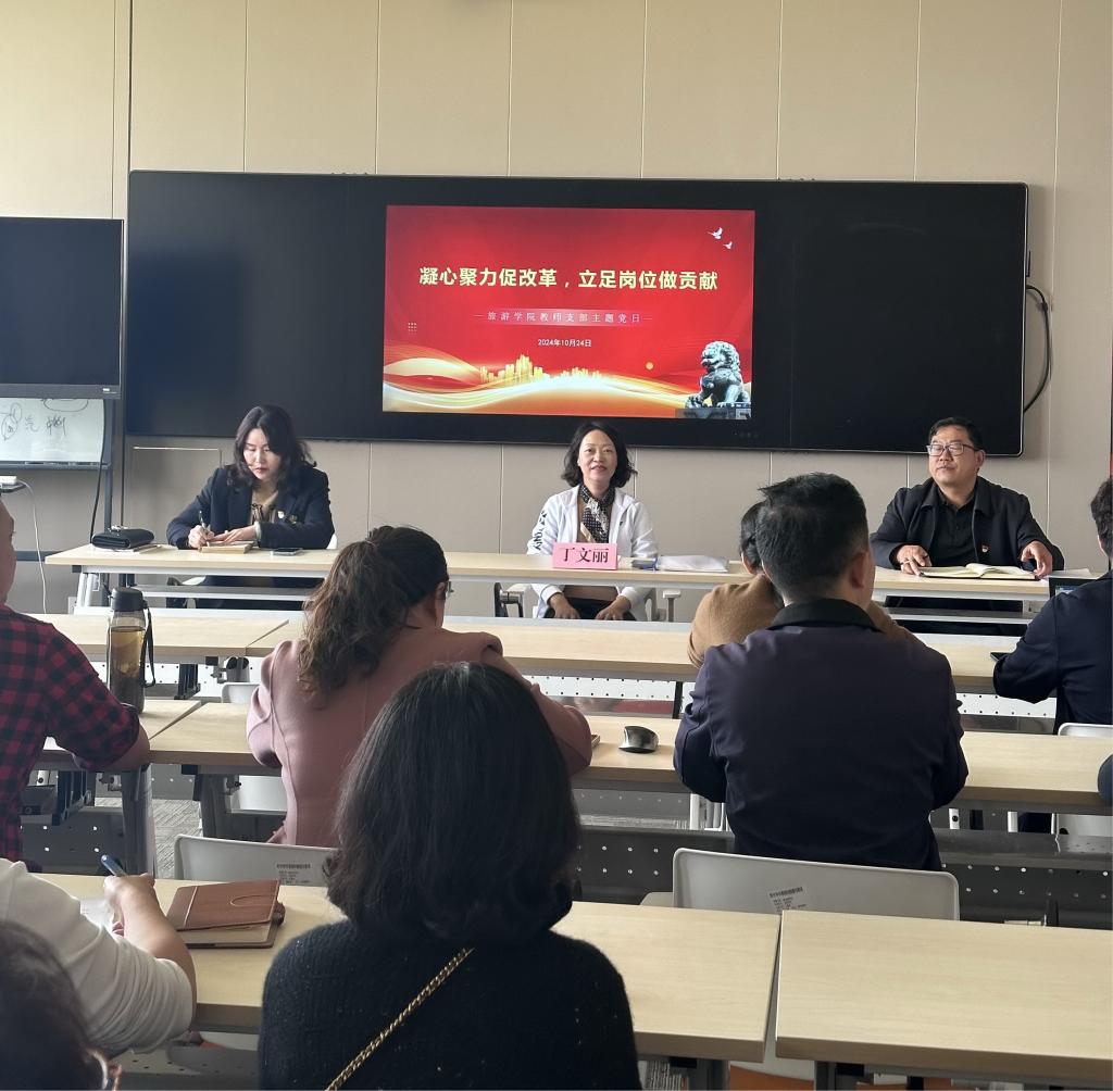 丁文丽校长列席指导教师党支部“凝心聚力促改革 立足岗位作贡献”主题党日活动,与联系师生谈心谈话。在听取支部党员、联系师生发言后,丁文丽首先肯定旅游学院在建设应用型学院、应用型专业、打造“双师双能型”教师队伍方面取得的成绩,希望旅游学院认真学习贯彻党的二十届三中全会精神,进一步深化内部体制机制改革,补齐影响学院高质量发展的短板弱项,每位教师党员都在自己的岗位上作出贡献。