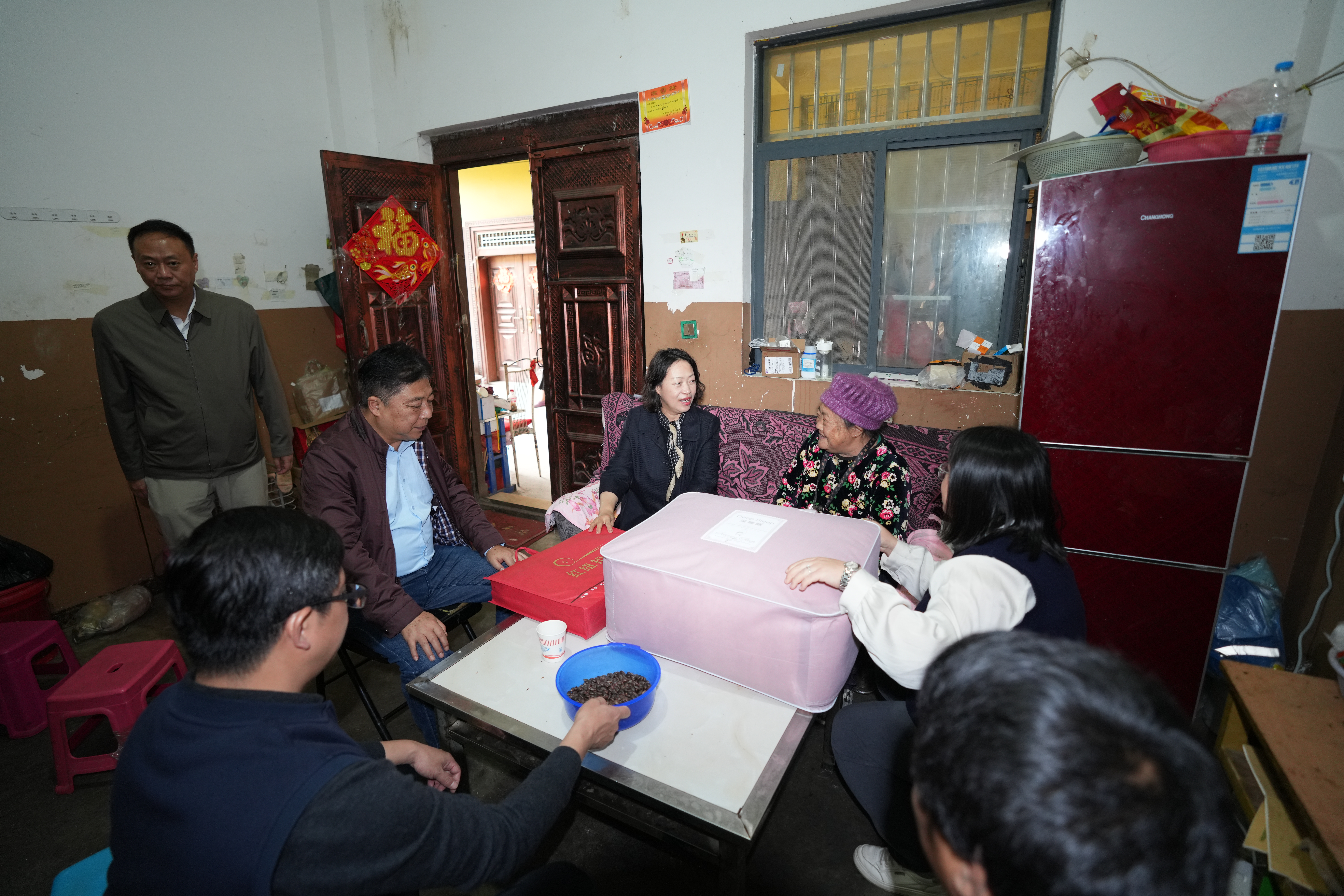 丁文丽一行实地考察了学校援建的阿旺镇乡村产业振兴农特产品集采中心,调研援建帮扶项目建设情况,详细了解了集采中心建设情况、农产品产销情况。参观了阿旺镇新碧嘎村共富集市、云南科绿水产有限公司(牛蛙养殖基地),对阿旺镇政府提供平台,支持帮助致富带头人创新销售方式,帮扶农户宣传推广农产品取得的成效给予高度肯定。随后,丁文丽一行入户走访慰问脱贫监测户,了解脱贫人口生产生活、医疗保障、入学就业等方面情况,并为脱贫监测户带去了学校的关怀和慰问。