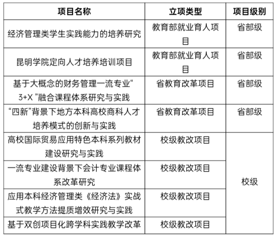 学院利用中国(云南)自贸试验区昆明片区唯一大学的地缘优势,依托现代产业学院(自贸学院)和跨境数字经济省级一流新兴学科建设优势,校政企协同参与人才培养方案制定,深度贴近市场需求,突出专业建设和人才培养区域、行业、复合、应用及差异化培养,逐步形成了两大办学特色。