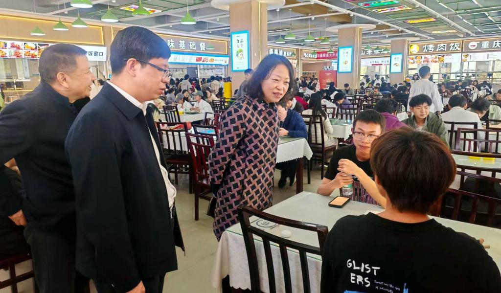 11月14日上午,学校党委副书记、校长丁文丽深入校园调研指导学校食品安全工作。党委委员、副校长李剀陪同调研。