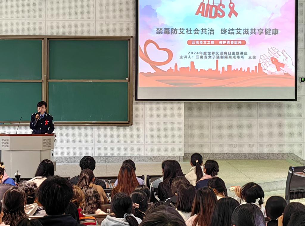11月22日,医学院携手云南省女子强制隔离戒毒所医院共同举办了一场以“禁毒防艾社会共治,终结艾滋共享健康”为主题的禁毒防艾宣传教育活动。此次活动正值第37个“世界艾滋病日”前夕,旨在加强学生对毒品和艾滋病的认识,提升禁毒防艾意识。共有200余名学生积极参与。