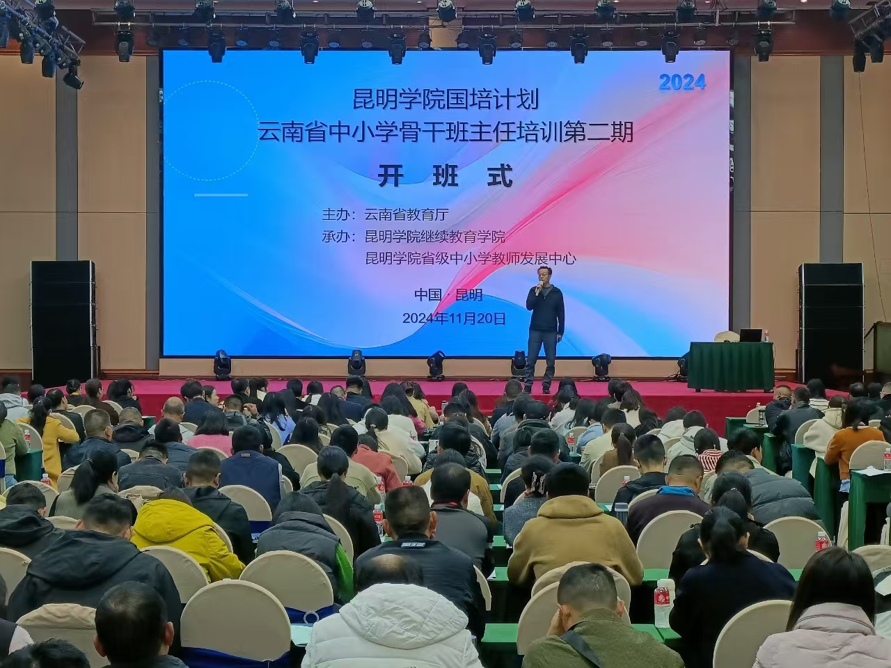 为深入学习贯彻习近平新时代中国特色社会主义思想,落实立德树人根本任务,弘扬教育家精神,培育新时代骨干班主任队伍,进一步提升专业素养和能力, 11月19日,新葡萄8883官网AMG国培计划(2024)云南省中小学骨干班主任培训第二期在继续教育学院开班。本次培训由云南省教育厅主办、新葡萄8883官网AMG继续教育学院和新葡萄8883官网AMG省级中小学教师发展中心承办,来自云南省各州市的中小学骨干班主任共351人参加培训。