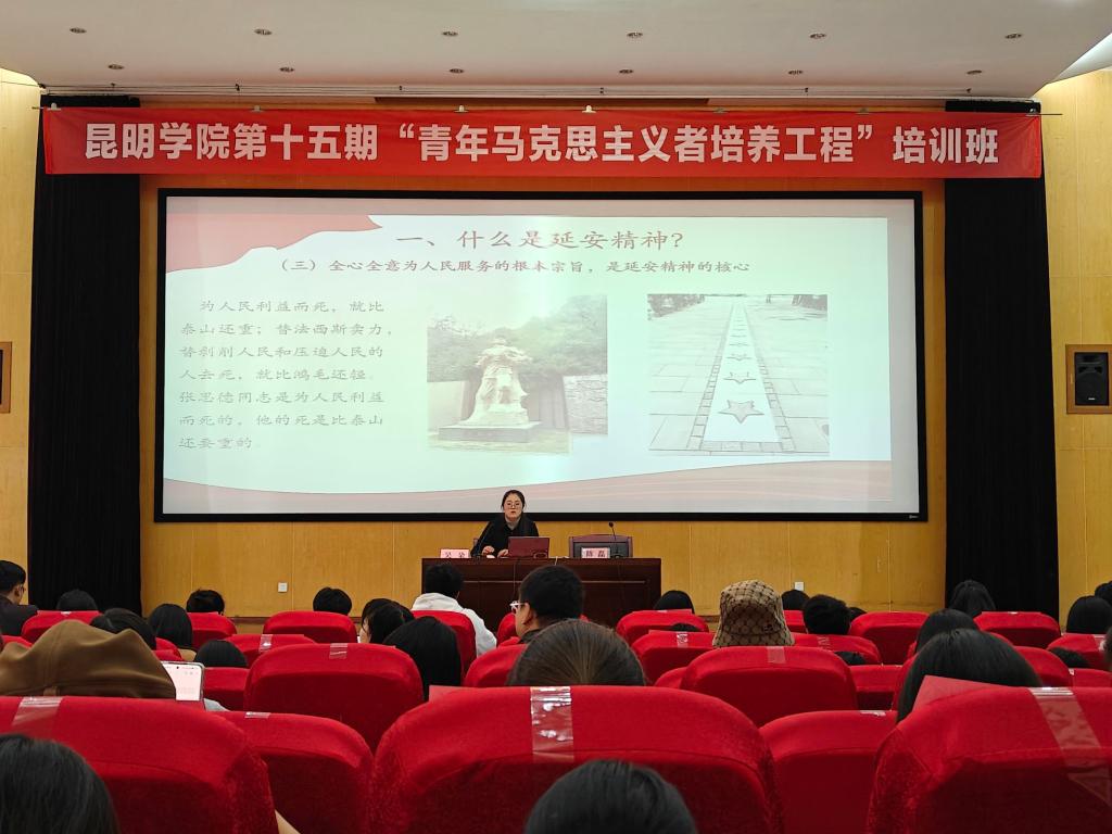 11月15日下午,学校第十五期“青年马克思主义者培养工程”培训班理论学习第三课暨“青年讲师团”专题培训在惟行楼1501报告厅举行。云南省青年讲师团成员、马克思主义学院教师吴朵作“弘扬延安精神 争做新时代好青年”专题讲座。吴朵老师以习近平总书记在瞻仰延安革命纪念地时的重要讲话精神为切入点,从“什么是延安精神”“为什么要弘扬延安精神”“青年大学生应该如何弘扬延安精神”等三个部分展开论述,深刻阐释了延安精神的科学内涵、主要内容、时代价值,展现了共产党人“革命理想高于天”的坚定信仰信念和伟大情怀。