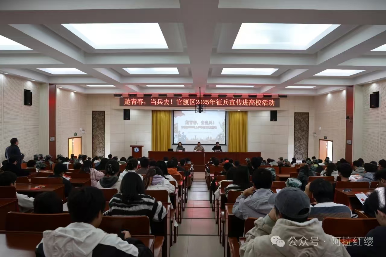宣讲会由新葡萄官网武装部部长王涛主持,官渡区人武部副部长杨鹏出席会议,学校武装部负责人,各二级学院负责征兵工作的辅导员及2025届毕业班300余名同学参加活动。