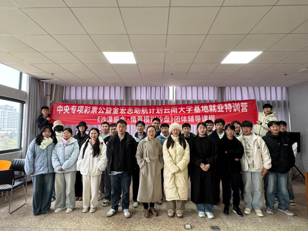 12月15日,为了进一步提升新葡萄官网就业指导教育的水平和质量,增强学生就业竞争力,由全国高校毕业生就业能力培训基地(云南大学)主办的“中央专项彩票公益金宏志助航计划就业特训营”——《“职场人生”沉浸式角色体验工作坊》团体辅导课程在新葡萄官网顺利举行。