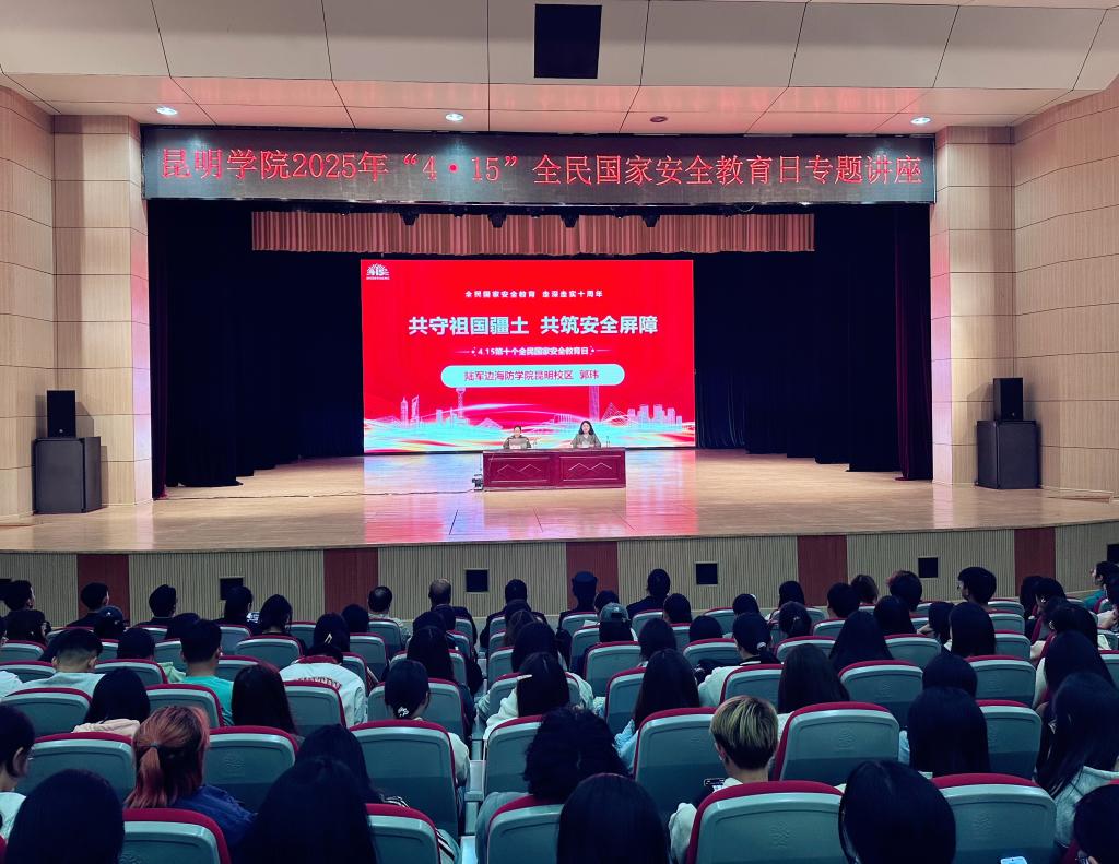 为深入贯彻落实习近平总书记关于全面加强国家安全教育的重要指示精神,切实做好第十个国家安全日的宣传活动,4月15日,学生工作部(武装部)、保卫处联合开展“全民国家安全教育•走深走实十周年”专题讲座。讲座邀请中国人民解放军陆军边海防学院昆明校区教员郭玮,以“共守祖国疆土 共筑安全屏障”为主题,在学生会堂为全校18个学院900余名师生代表带来了一场深刻而生动的国家安全教育专题讲座。讲座由保卫处处长喻玲主持。