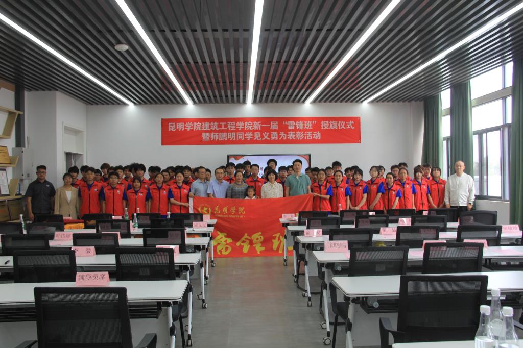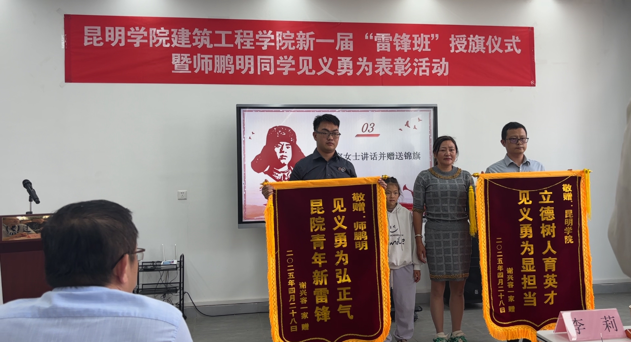 4月28日,建筑工程学院举行新一届“雷锋班”授旗仪式暨师鹏明同学见义勇为表彰活动。学校党委副书记李莉,党委宣传部、学生处负责人,各二级学院党委副书记,建筑工程学院师生代表及受助者家属等130余人出席。