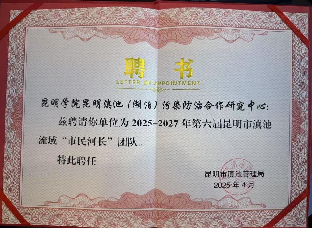 第六届昆明市滇池流域市民河长聘任仪式于4月30日在星海半岛生态湿地公园举行,新葡萄官网昆明滇池(湖泊)污染防治合作研究中心继续受聘新一届昆明市滇池流域“市民河长”团队。