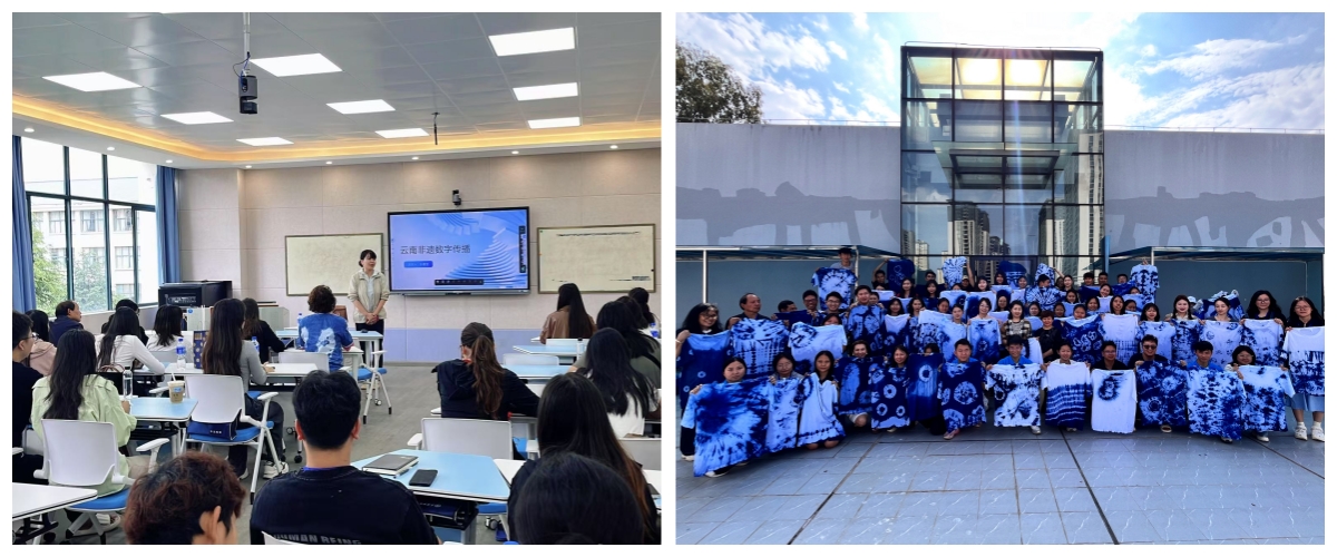人文学院孙雪莹副教授结合数字技术,为学员们带来了云南非遗文化的数字传播课程,展示了基地近年来与中国科协“青年瞭望号”工作室共同拍摄制作的系列非遗纪录片。并通过实践与体验的方式,将大理扎染带进课堂,把文化阐释和技艺体验相结合,在跨文化交流上达到情感共鸣,讲好中国故事。