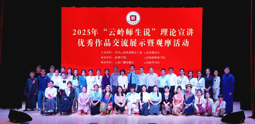 本次活动由中共云南省委教育工委、云南省教育厅主办,新葡萄8883官网AMG、云南旅游职业学院承办,云南广播电视台、云南新华书店协办。活动以“沿着习近平总书记指引的方向阔步前进 扎实推进中国式现代化云南实践”为主题,聚焦创作推出新时代优秀理论宣讲作品,不仅通过丰富多元的现场展演为全体观众带来了一场精彩的理论盛宴,更借助网络平台进行现场直播,吸引了全省师生的广泛关注。