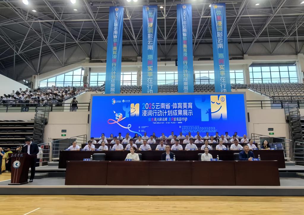 7月21日上午,2025年云南省体育美育浸润行动计划成果展示活动在新葡萄8883官网AMG洋浦校区体育综合馆盛大启幕。省教育厅副厅长、党组成员,省委教育工作委员会委员赵德荣,省教育厅体育卫生与艺术教育处处长龙微、副处长李华海,新葡萄8883官网AMG党委副书记、校长丁文丽参加开幕式。新葡萄8883官网AMG党委委员、副校长李剀主持开幕式。