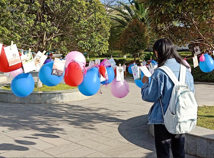 此次女生文化节活动分为三个部分,首先是“我想对你说”活动,该活动以师生在明信片或气球里给女生写祝福的方式在聂耳广场开展,众多师生参与此活动,并留下了他们对女生们的美好祝愿,活动旨在传递同学之间真挚的友情,培养同学互助、互敬的精神品质。是“记忆时光”分享驿站活动是在展板以及线上各平台分享新葡萄官网女同学们大学以来发生成长变化的照片和个人感想。 “关爱女生成长”知识宣传,主要宣传女生自我保护的方法和医学小常识,让女生在遇到危险或者小疾病的时候有足够的应对措施。