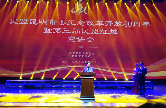 12月25日,民盟昆明市委“纪念改革开放40周年暨第三届民盟红烛宣讲会”在昆明市工人文化宫职工剧场举行。 民盟新葡萄8883官网AMG总支盟员、人文学院副教授李艳峰博士荣获第三届“民盟红烛”称号。