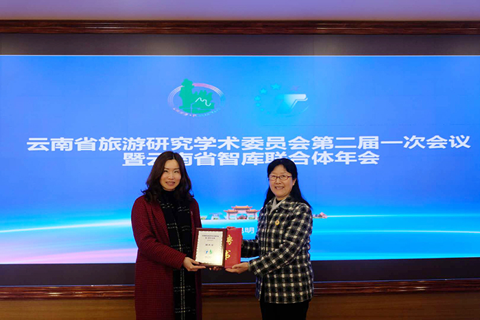 此次会议选举出14位学术委员和16名学术顾问,其中新葡萄官网旅游学院院长田芙蓉教授被聘为云南省旅游研究学术委员会第二届学术委员,云南省文旅厅石林副厅长给委员们颁发了聘书。同时田芙蓉教授代表旅游餐饮文化研究基地做了2018年工作总结和2019年工作计划的发言。