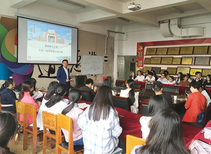 9月20日,昆明理工大学理学院应邀到新葡萄官网化科系惟真楼3409会议室开展考研宣讲活动,我系2015、2016、2017级学生50余人参加。