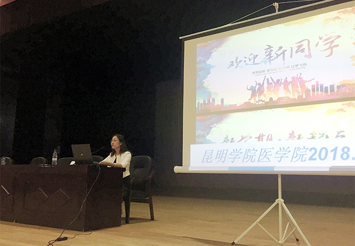 余珊院长以《献身医学,立志成才》为题,向2018级新同学介绍了新葡萄8883官网AMG的基本情况、医学院的办学历史、师资队伍、科研状况、实践教学条件等。并结合“希波克拉底誓言”、“中国医学生誓词”及新葡萄8883官网AMG“明德至善,知行利物”校训进行解读,向新同学提出希望:一是树立献身医学的崇高理想;二是学会做人;三是学会学习;四是历练自己健康的心理素质。