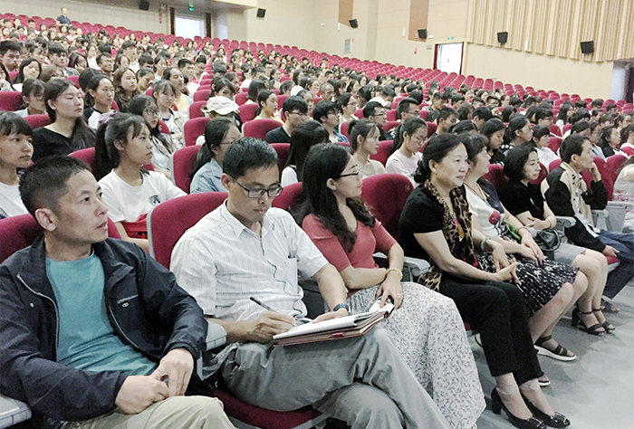 9月3日,医学院在学生会堂举行2018级新生开学典礼暨入学教育大会,医学院党委书记王建华、院长余珊、副书记张培宏、副院长杨兆宇、副院长陶剑、学院各教研室主任、教师代表、2018级辅导员和班主任、470余名新生参加了此次大会,会议由陶剑主持。