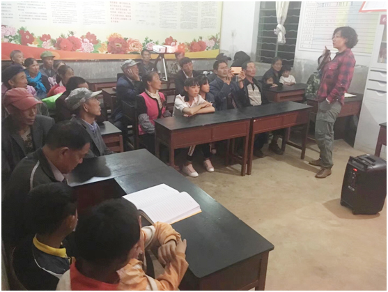 当晚,项目组在关中村党员活动室为30余位村民进行了“教育部西南地区旅游和健康教育扶贫”——新葡萄8883官网AMG东川区阿旺镇关中村系列讲座,分别从旅游资源开发与利用、旅游接待软硬件条件、旅游要素普及、转变观念求发展、如何理财等方面进行了三个多小时的精彩讲座,启发了村民的思路,刺激了村民参与旅游开发项目的愿望,得到了村民们的高度评价。