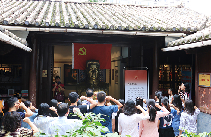 7月5日,为认真学习宣传贯彻习近平新时代中国特色社会主义思想和党的十九大精神,热烈庆祝中国共产党建党97周年,回顾党的光辉历程,牢记历史使命,进一步增强对党的热爱和信仰,新葡萄官网直属党支部组织全体党员教师及入党积极分子共29人到“中共云南地下党建党旧址”及“陆军讲武堂”进行参观学习活动。