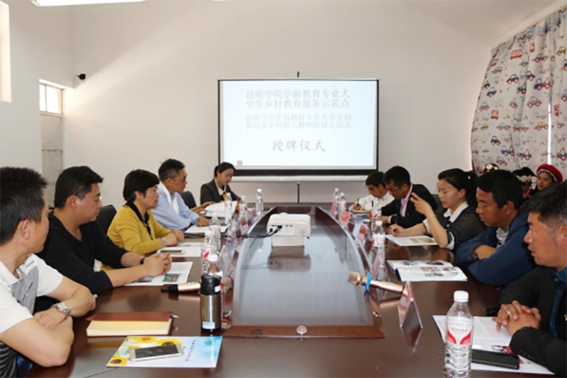 4月13日,学前与特殊教育学院院长唐敏、书记沈中灿一行到香格里拉市三坝乡中心幼儿园(哈巴村分园)出席“新葡萄8883官网AMG学前教育专业大学生乡村教育服务示范点和“大学生创新创业乡村幼儿教师培训示范点”授牌仪式。本次授牌仪式是在香格里拉市教育体育局和新葡萄8883官网AMG学前与特殊教育学院两年多的通力合作基础上举办的,香格里拉市体育教育局局长牛盈春,三坝乡副乡长树继文参加授牌仪式。