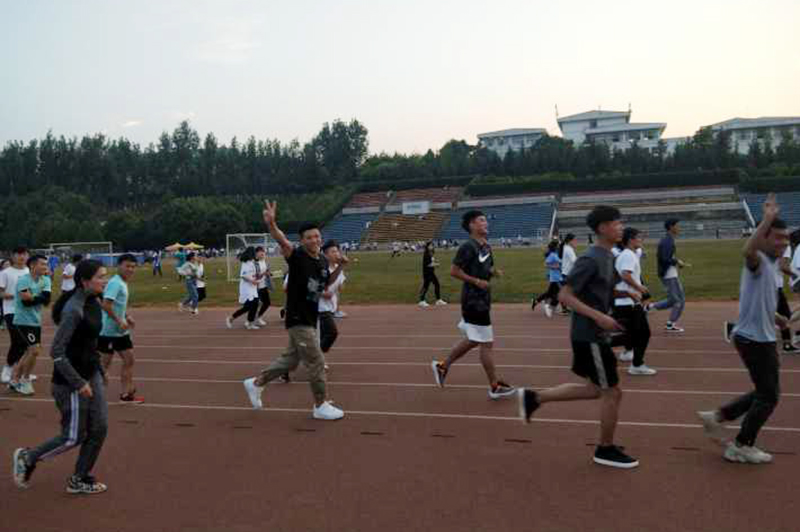夜跑正式开始前,报名的同学们带上荧光棒等物品武装自己。随着起跑哨声响起,各家学院的同学们依次出发,井然有序的围绕田径场向前奔跑,荧光点缀着夜晚的昆院,活动现场也充满欢声笑语。夜跑后,同学们纷纷在记录台写下自己的运动公里数。活动结束后全校同学的运动公里数将会由校学生会兑换成学习用品,为山区小朋友送爱心。