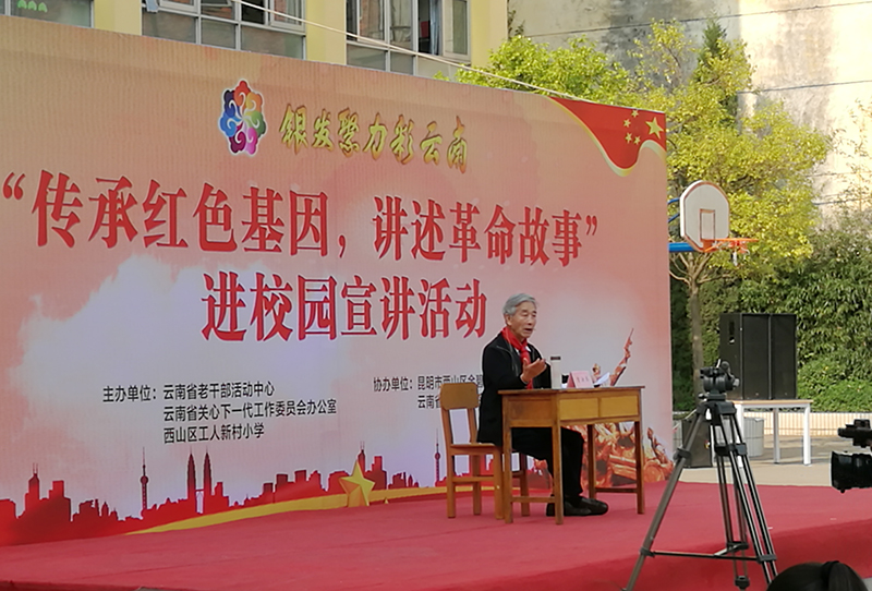 4月29日上午,由云南省老干局,云南省关工委主办,省老干部活动中心、省关工委办公室、工人新村小学承办的“传承红色基因,讲述革命故事”报告会在工人新村小学举行。云南省老干局巫运康副局长、省关工委常务副主任莫泰尧等领导出席报告会并讲话,新葡萄8883官网AMG离退休处党总支副书记付晏昆作为聂耳母校的代表出席了报告会。