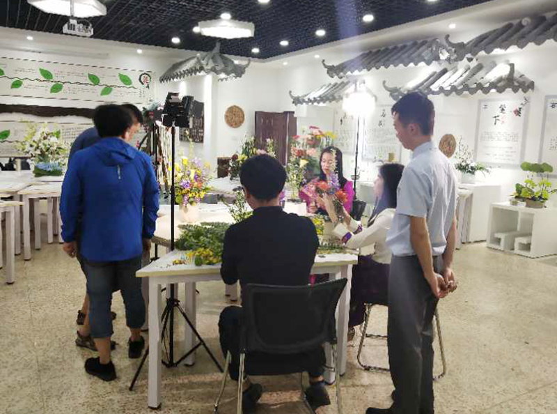 7月6日上午,昆明广播电视台全媒体新闻中心形象片工作部到新葡萄官网中心滇池流域花文化展示与体验分馆取景拍摄春城花都宣传片—夏花。