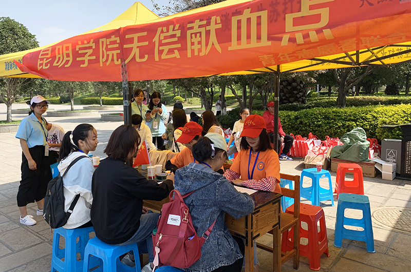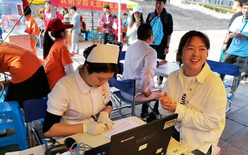 为迎接新中国成立70周年,新葡萄官网青年志愿者联合会于9月28日在聂耳广场开展了以“爱我中华,捐我热血”为主题的无偿献血活动。此次活动全校师生共453人参与,献血总量达144920ml。