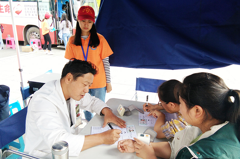 为弘扬无私奉献、救死扶伤的精神,提高当代大学生的社会责任感和积极参与公益事业的热情。新葡萄官网青年志愿者联合会于10月27日在聂耳广场开展以“传递爱的温暖,点燃生命之光”为主题的无偿献血活动。参加本次活动的师生以及社会爱心人士共计429人,献血量达137060ml。