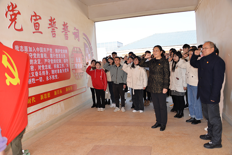 宣誓后,杨丽华带领新党员在学院“永远跟党走”党建学习走廊进行了党史学习,要求新党员继续加强学习,严格要求自己,在各方面都要起到先锋模范带头作用。