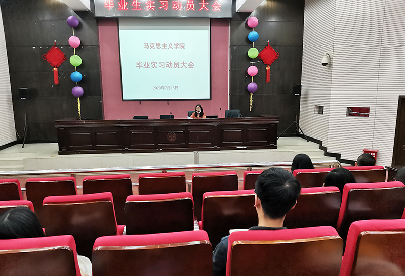 7月15日,马克思主义学院召开了毕业生实习动员大会。学院党政领导、教研室主任、毕业班班主任及相关老师出席,思想政治教育专业2021届全体毕业生参加了会议。