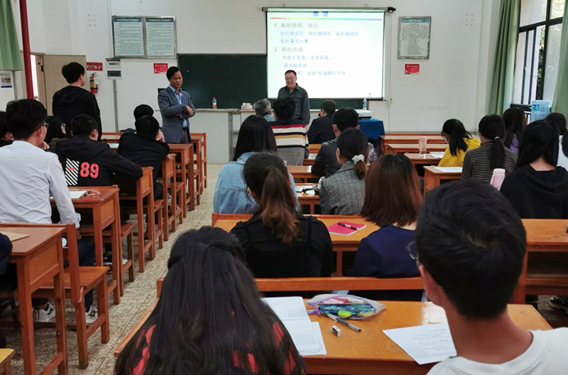 9月29日,中国科学院物理研究所研究员、博士生导师、国家杰出青年基金获得者、国家973计划首席科学家、国家重点研发计划项目首席科学家刘伍明应邀到新葡萄官网物理科学与技术学院作主题为“拓扑量子态”学术报告。物理科学与技术学院院长、任课教师、有机光电子材料与器件重点实验室负责人、学校硕士研究生等参加本次学术报告。