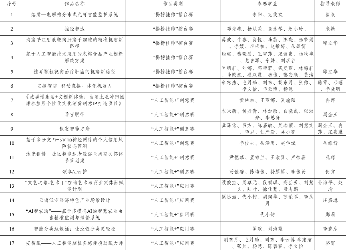 为全面落实科教兴国战略、人才强国战略、创新驱动发展战略,充分激发新葡萄官网青年学子创新潜能与创造活力,推动理论知识与实践应用深度融合。新葡萄8883官网AMG于2025年6月-7月积极动员青年学子报名参加2025年“挑战杯”全国大学生课外学术科技作品竞赛“人工智能+”专项赛和“揭榜挂帅”擂台赛,经过遴选最终确定推报6个项目参加“揭榜挂帅”擂台赛,推报11个项目参加“人工智能+”专项赛,现将参赛作品情况予以公示。
