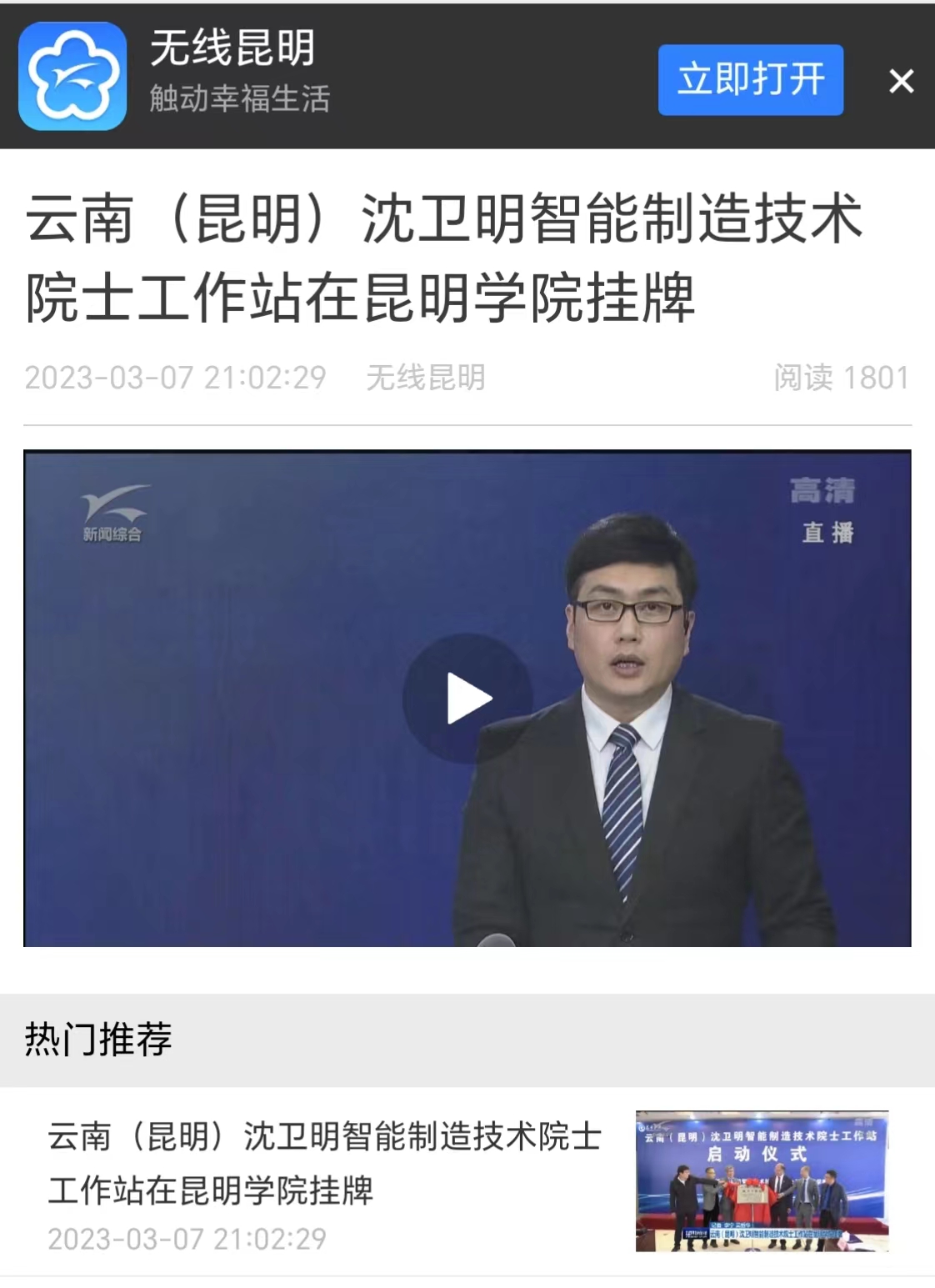 云南(昆明)沈卫明智能制造技术院士工作站在新葡萄8883官网AMG挂牌