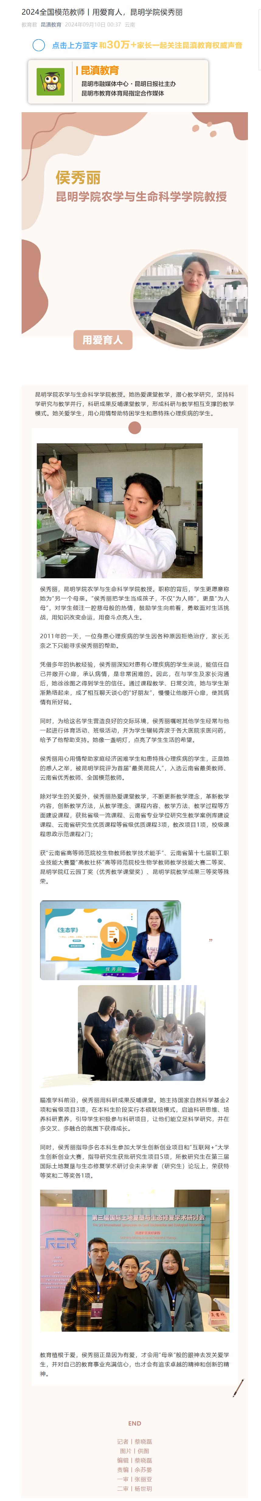 2024全国模范教师丨用爱育人,新葡萄8883官网AMG侯秀丽