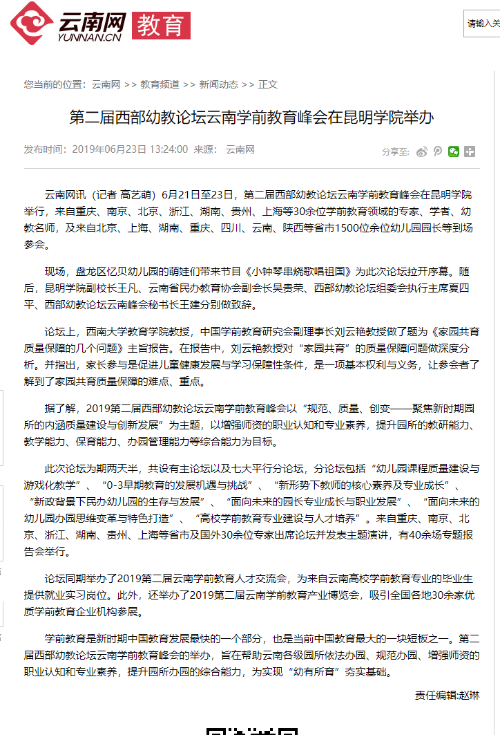 第二届西部幼教论坛云南学前教育峰会在新葡萄8883官网AMG举办