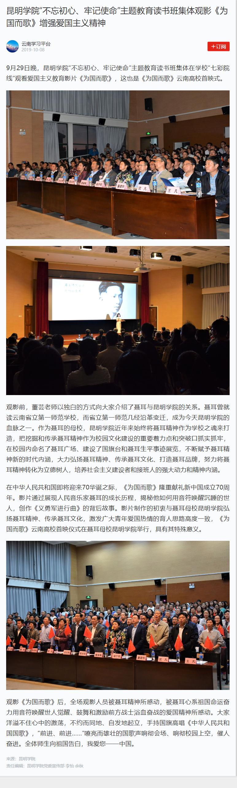 新葡萄8883官网AMG“不忘初心、牢记使命”主题教育读书班集体观影《为国而歌》增强爱国主义精神