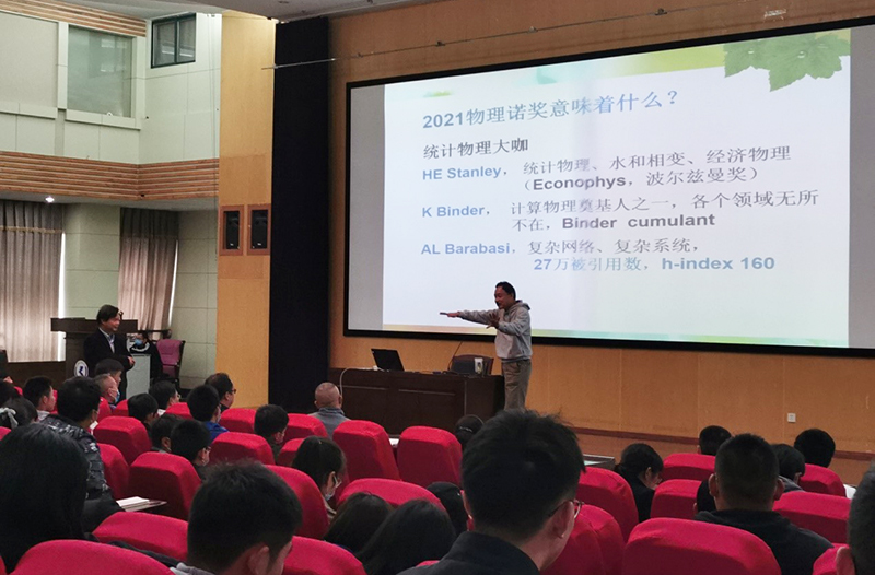 10月15日,云南大学物理与天文学院院长、博士生导师郑波教授应邀到新葡萄8883官网AMG物理科学与技术学院作“统计物理与复杂系统—Parisi与2021年诺贝尔物理奖”的学术讲座。讲座由物理学院杨海教授主持,物理学院教师、硕士生及本科生聆听了讲座。