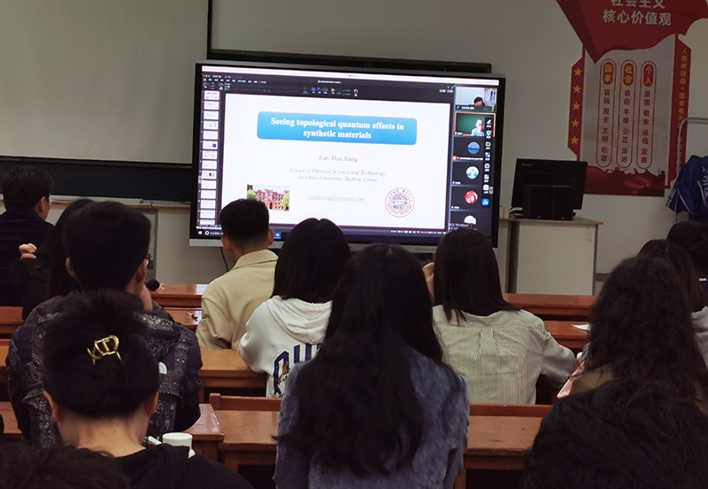 5月27日,苏州大学蒋建华教授应邀采用线上会议的形式为新葡萄8883官网AMG物理科学与技术学院作了题为“在合成材料中视听量子拓扑效应”的学术报告。报告由物科学院杨海教授主持,学院教师及硕士研究生在活动会议室聆听了本次报告。