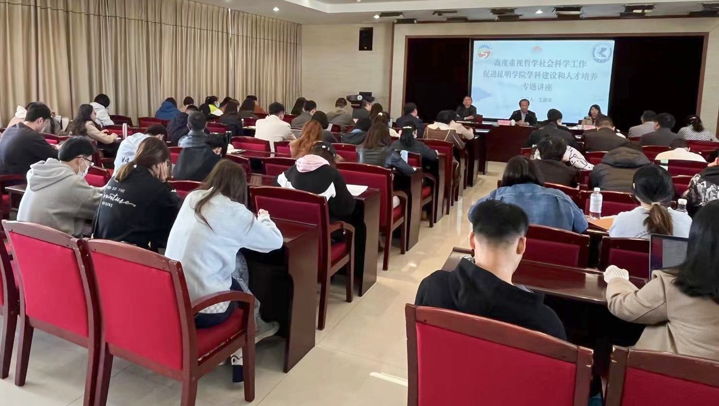 10月18日上午,云南省社会科学联合会副主席王建华应邀到新葡萄官网作题为 “高度重视哲学社会科学工作促进新葡萄8883官网AMG学科建设和人才培养”专题讲座。讲座由校长丁文丽主持,副校长马银海,科学技术处及各二级学院党政主要负责人、分管科研工作副院长、科研秘书、科研人员代表参加。
