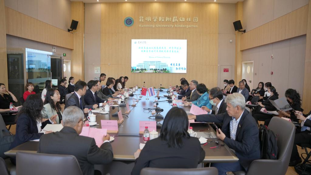 4月25日上午,泰国高等教育、科学研究及创新委员会代表团巴金•詹通主席、格莱西•丹迪西里第三副主席一行,在泰王国驻昆明总领事馆总领事帕薇婉及相关人员的陪同下到新葡萄官网访问交流。学校党委副书记、校长丁文丽,党委委员、副校长李剀热情接待了来宾一行。