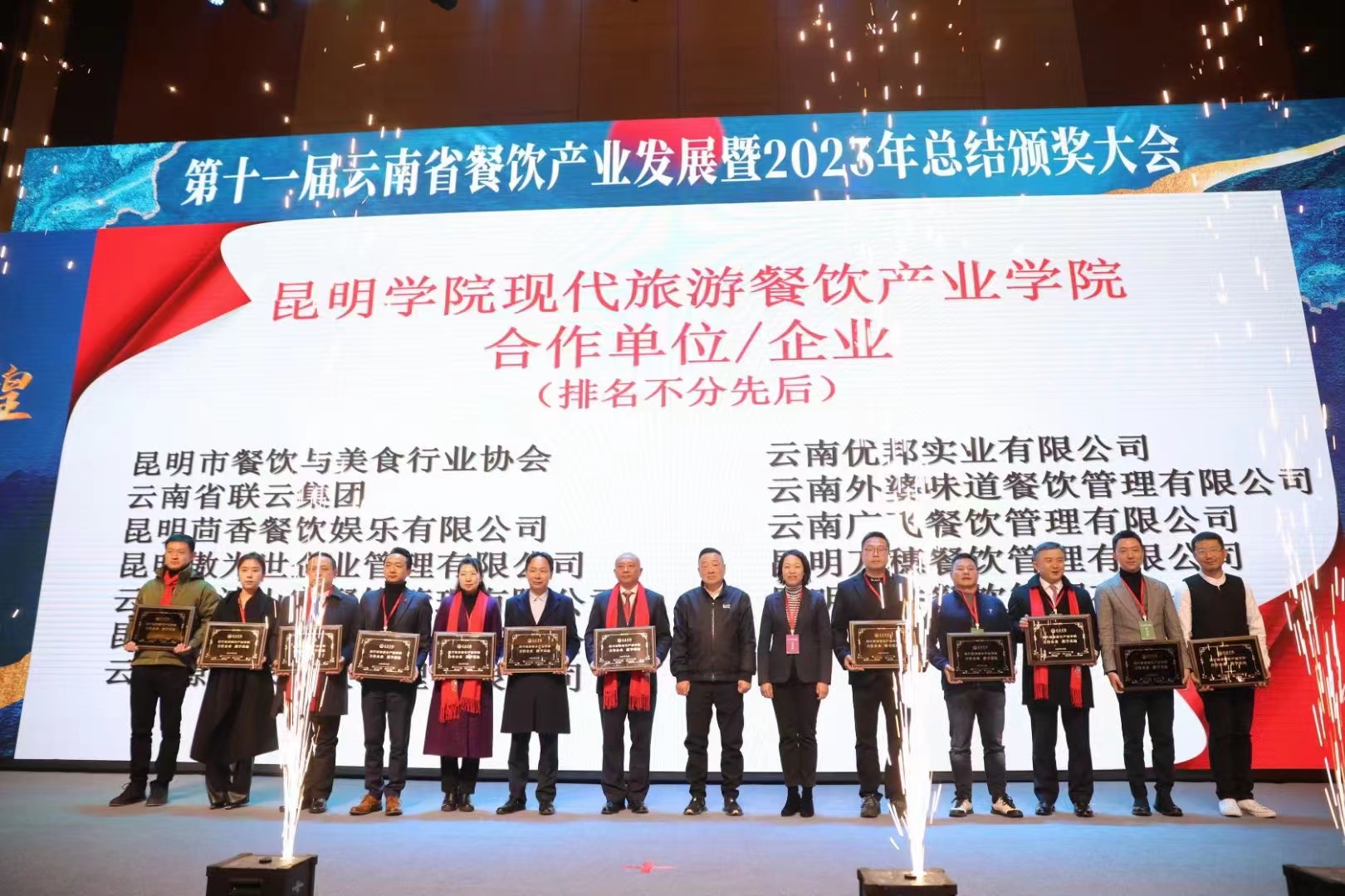 同期,新葡萄8883官网AMG现代旅游与餐饮产业学院执行院长田芙蓉教授在会上发布了《2023云南餐饮产业发展报告》,对云南餐饮行业市场运行态势、发展趋势、相关数据进行全面分析,并介绍了现代旅游餐饮产业学院目标定位、建设基础、育人模式、保障体系和发展规划。新葡萄8883官网AMG旅游学院孙志强、王京法教师荣获职业教育先进人士,刘福灿老师荣获餐饮业2023年度影响人物,在会上接受颁奖。