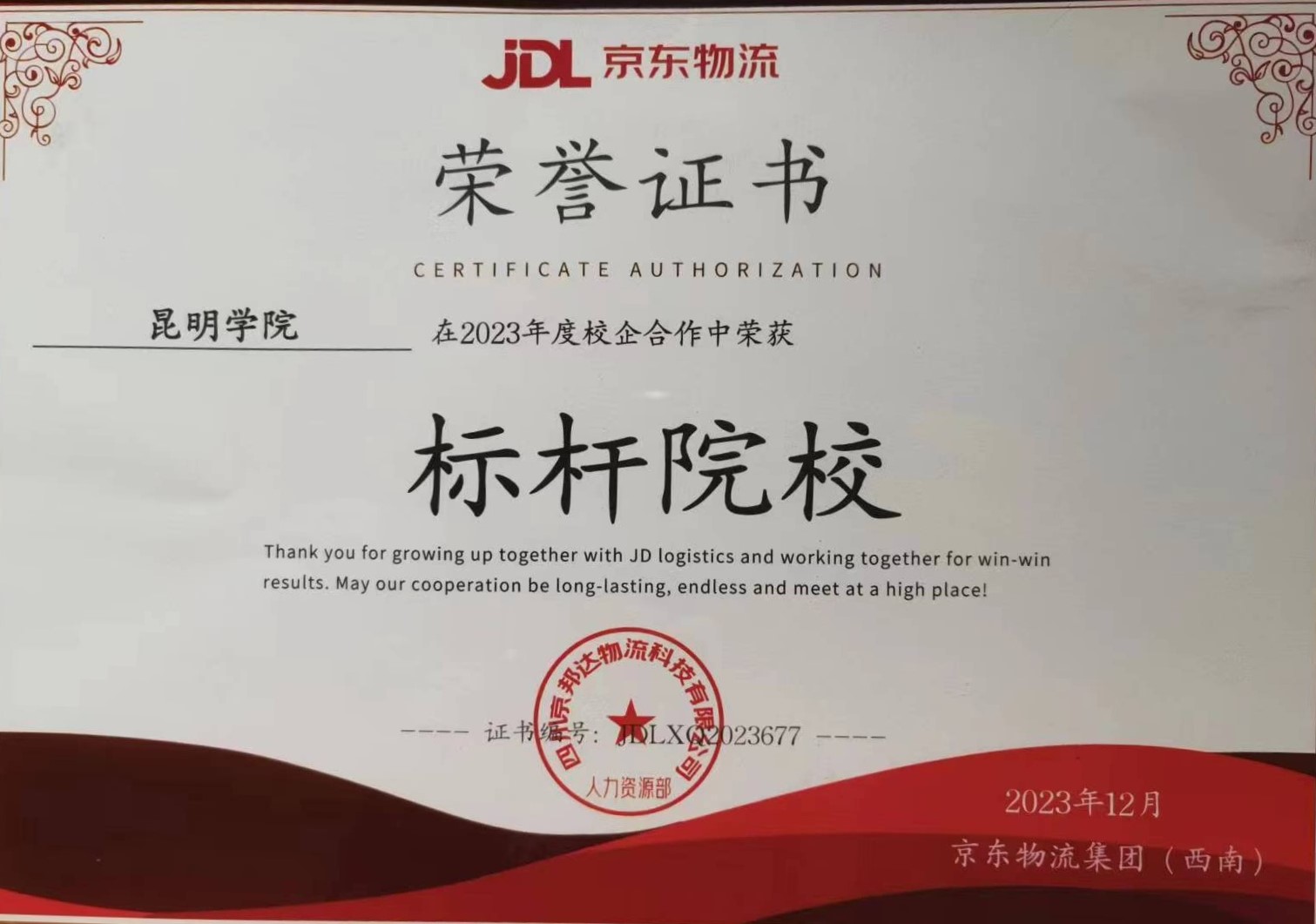 新葡萄官网经济管理学院院长雷新华、副院长林涛应邀参会,代表学校领取了“合作标杆院校”奖项,此次获奖是京东物流集团对双方开展校企合作、产教融合工作的肯定。2019年,新葡萄官网与京东物流集团签订了校企合作协议,经济管理学院与京东物流云南京邦达公司在开发课程、开展学生实习实训等方面开展了深入的合作,有效提升了学生专业实践能力和综合素质,强化了校企合作效果。