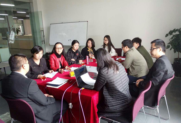 云南浩宏集团创新事业部总监杨屹江首先向课题组成员介绍了云南浩宏集团的概况和该公司与我们新葡萄8883官网AMG的交流项目,同时阐述了“营改增”背景下云南浩宏集团营运资金管理的现状及存在的问题,财务总监张莉分享了“营改增”背景下云南浩宏集团营运资金管理模式设计体系,提出了建立“网络银行”以提升营运资金管理效率的方法。