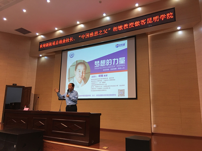 5月11 日,新航道国际教育集团总裁兼校长胡敏教授应邀到新葡萄官网进行了“梦想的力量”大型公益励志主题讲座。此次讲座由外国语学院主办,新航道国际教育集团(昆明新航道)承办。外国语学院各位领导、新航道国际教育集团领导及新葡萄官网部分师生参加了本次讲座。