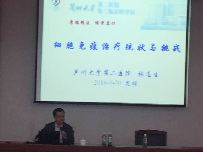 9月30日,兰州大学医学院教授,兰州大学第二医院院长助理、血液病研究所所长、血液科主任,兰州大学第二医院定西医院院长,博士生导师张连生教授应医学院余珊院长邀请,到新葡萄官网作了题为“再谈细胞免疫治疗”的专题讲座。本次讲座由科研处主办,医学院承办。医学院、校医院、附属医院以及其他院系师生共计200余人参加了本次讲座。