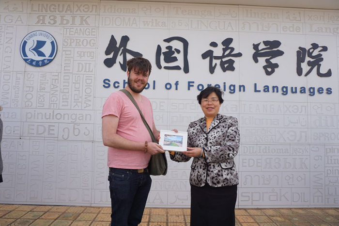 在外国语学院学生的陪同下,挪威师生还参观了滇池博物馆。