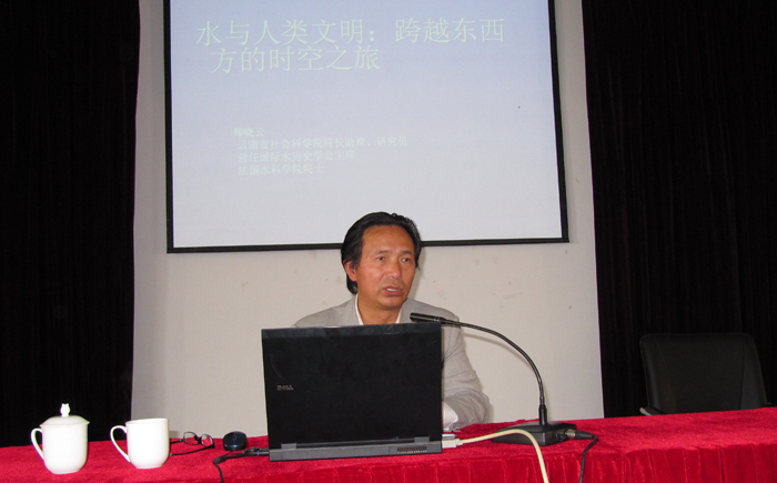 5月27日,由中共云南省委宣传部、云南省社科联主办,新葡萄8883官网AMG昆明科学发展研究院承办的“云岭大讲堂”2016年第三讲在新葡萄官网惟行楼举办。此次讲座邀请云南省社会科学院院长助理、国际生态文化研究中心主任郑晓云研究员,做《水与人类文明:跨越东西方的时空之旅》主题讲座。昆明科学发展研究院副院长沈艳萍教授主持讲座。